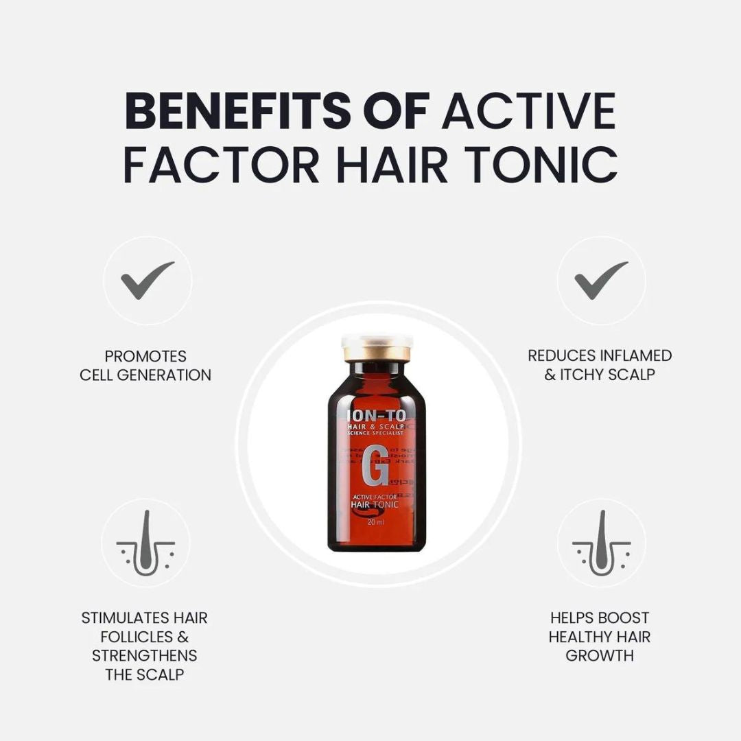 With Growth Factor Proteins (bFGF, VEGF) in high concentrations that promote cell regeneration, Ion-to G is an effective solution for hair rejuvenation; These proteins are critical in supporting the look of fuller, healthy hair.