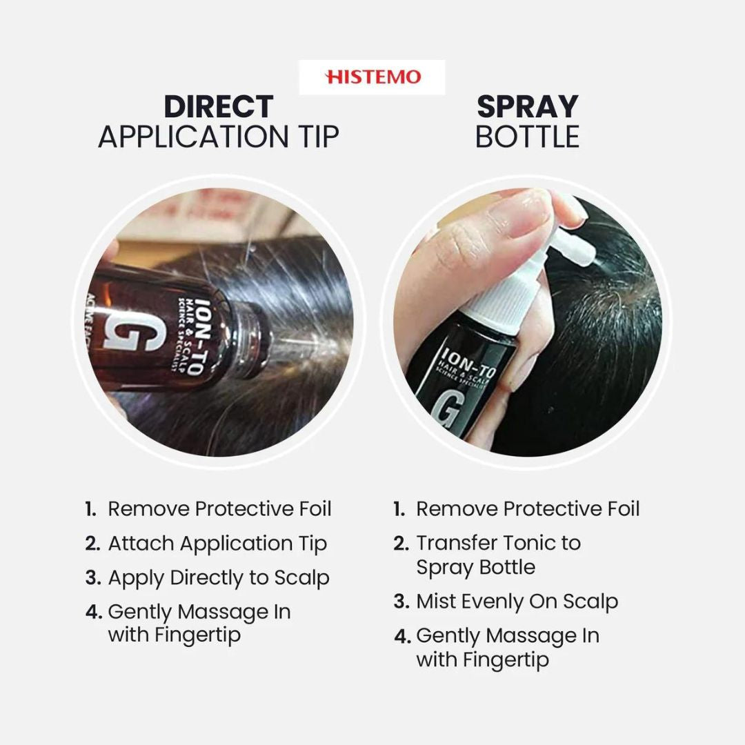 About 88% of your hair is composed of the protein keratin; For our body to produce keratin, it requires specific types of amino acids; An adequate level of different amino acids leads to an optimum keratin production, which, in turn, boosts hair growth; Histemo Ion-to G Hair Tonic contains these Top 3 Amino Acids for faster hair growth.